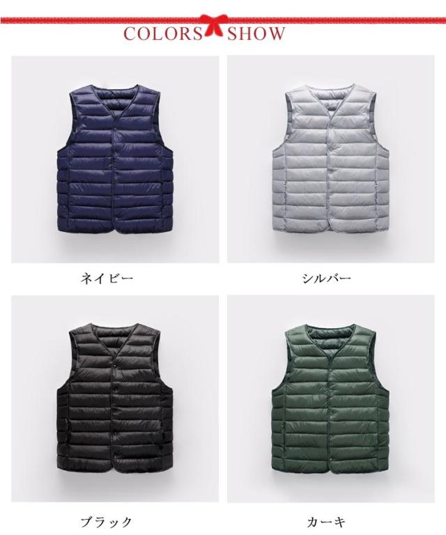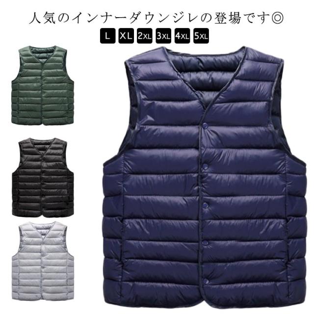 メンズ ライトベスト インナーベスト 薄手 軽量 秋 冬 インナー 中綿ベスト Vネック ベスト ジレ ポケット付き 暖かい 防寒 保温 大きいサイズ 中綿 キルティングベスト キルトベスト 【送料無料】