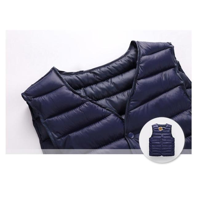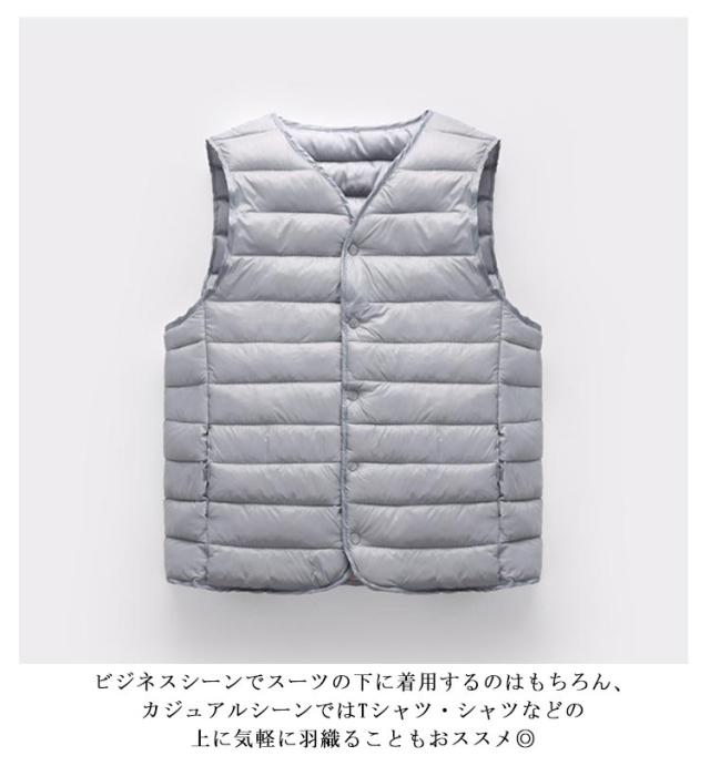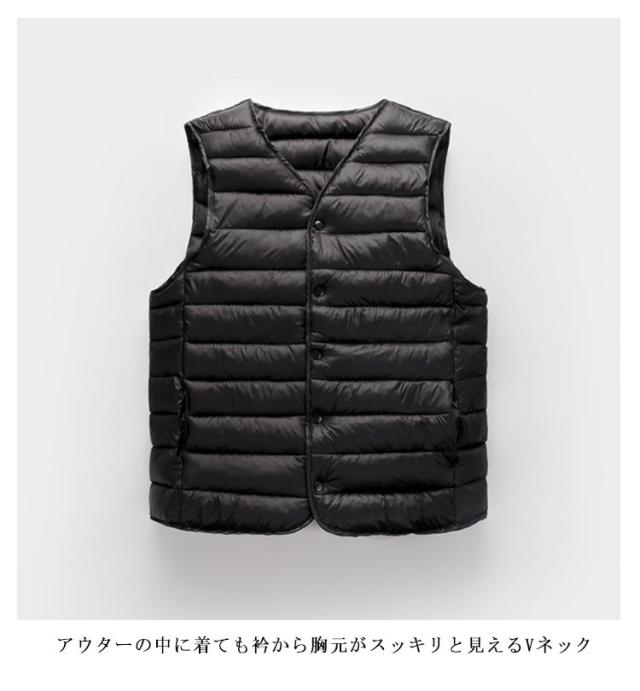 | 人気のインナーダウンジレの登場です◎ 中綿入りであたたかな保温性にをキープしてくれるのも魅力的です。 ビジネスシーンでスーツの下に着用するのはもちろん、カジュアルシーンではTシャツ・シャツなどの上に気軽に羽織ることもおススメ◎ アウターの中に着ても衿から胸元がスッキリと見えるVネック インナーダウンという特性上、若干タイトな作りとなっています。余裕を持って着用希望のお客様はワンサイズアップをおすすめします。 秋から冬、春先とロングシーズンで大活躍 | |