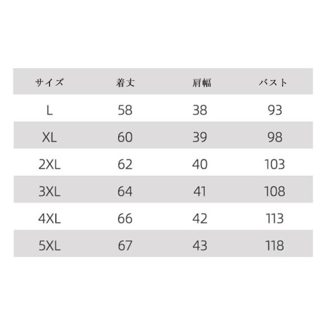 | サイズ | L XL 2XL 3XL 4XL 5XL |