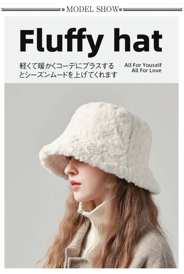 フェイクファー かわいい もこもこ おしゃれ 帽子 おしゃれ レディース 帽子 ふわふわ あったか 帽子 暖かい 防寒 バケハ エコファー 秋冬 小顔効果 つば広 秋冬 プレゼント