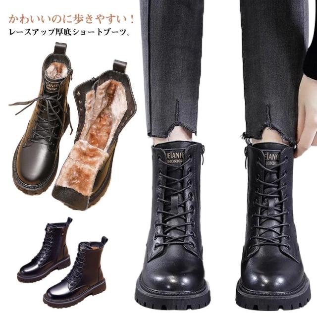 厚底 ワークブーツ レディース 裏起毛 ショートブーツ 冬ブーツ PU ショートブーツ 暖かい フェイクレザー ムートンブーツ 厚底 レースアップ ファスナー ショート ブーツ 裏ボアブーツ ミドル 美足 ブーツ 春秋 靴