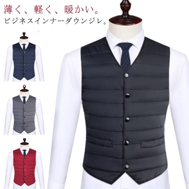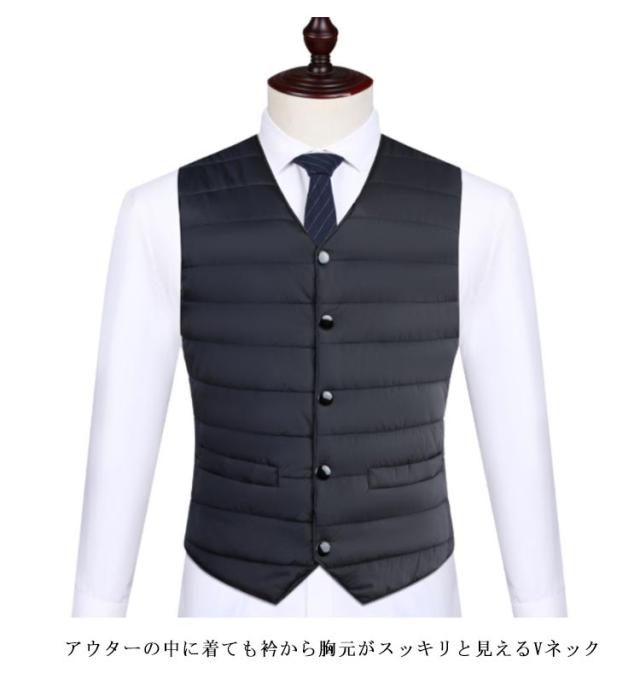 インナーダウンベスト ポケット付き メンズ ダウンジレ インナーダウンベスト インナーベスト 秋 軽量 インナージレ 薄手 インナー 中綿ベスト 中綿ジレ Vネック ファイバーダウン ベスト ジレ エコダウンベスト 防寒 暖かい ビジネス 保温 大きいサイズ 黒 紺
