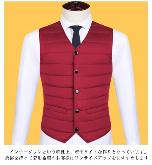 | 薄く、軽く、暖かい。ビジネスインナーダウンジレ。 中綿入りであたたかな保温性にをキープしてくれるのも魅力的です。 ビジネスシーンでスーツの下に着用するのはもちろん、カジュアルシーンではTシャツ・シャツなどの上に気軽に羽織ることもおススメ◎ アウターの中に着ても衿から胸元がスッキリと見えるVネック インナーダウンという特性上、若干タイトな作りとなっています。余裕を持って着用希望のお客様はワンサイズアップをおすすめします。 秋から冬、春先とロングシーズンで大活躍 | |