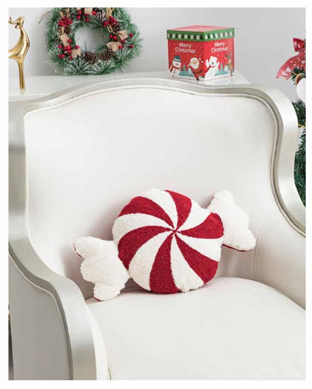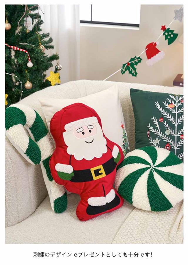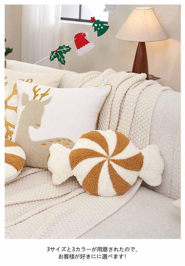 クリスマス キャンディ ソファクッション ソファクッション クッション 枕 ステッキ 刺繍 装飾クッション 円形 ソファ背当て 座布団 レッド イエロー グリーン おしゃれ ファブリック カジュアル インテリア 北欧 クリスマス飾り