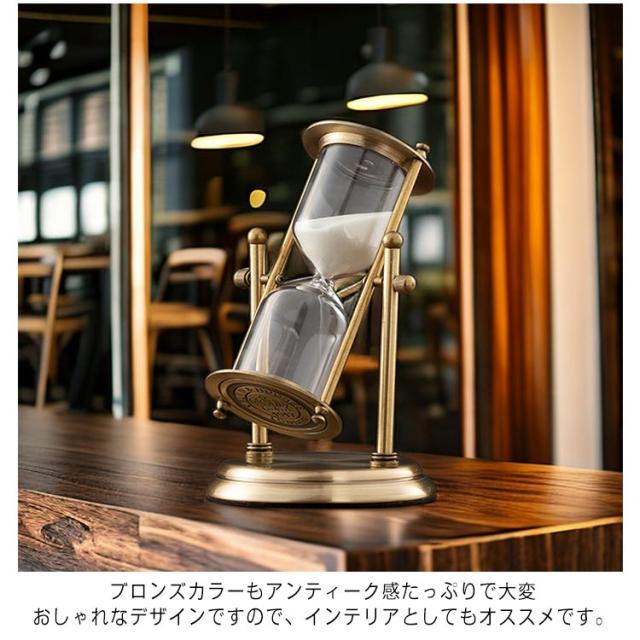 | ヨーロピアンアンティーク風のとってもオシャレで素敵な砂時計 まるで地球儀のデザインのように回転することが出来るデザインです。 ブロンズカラーもアンティーク感たっぷりで大変おしゃれなデザインですので、インテリアとしてもオススメです。 デジタルな世の中ですが、アナログなアイテムでゆったり時間を計るのもステキですね。 | |