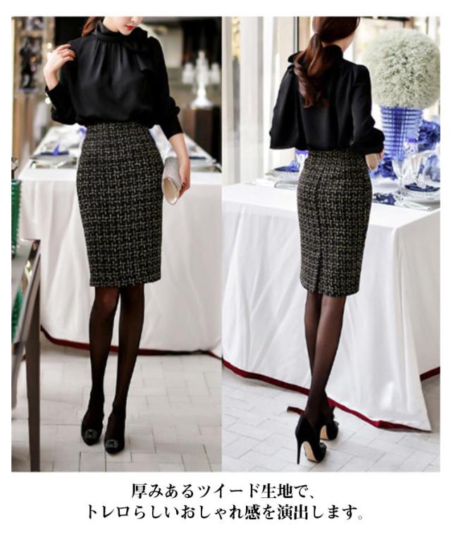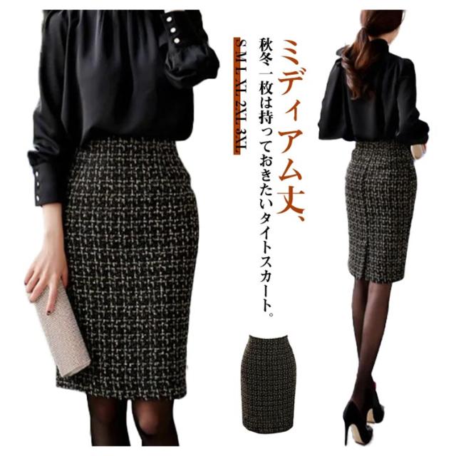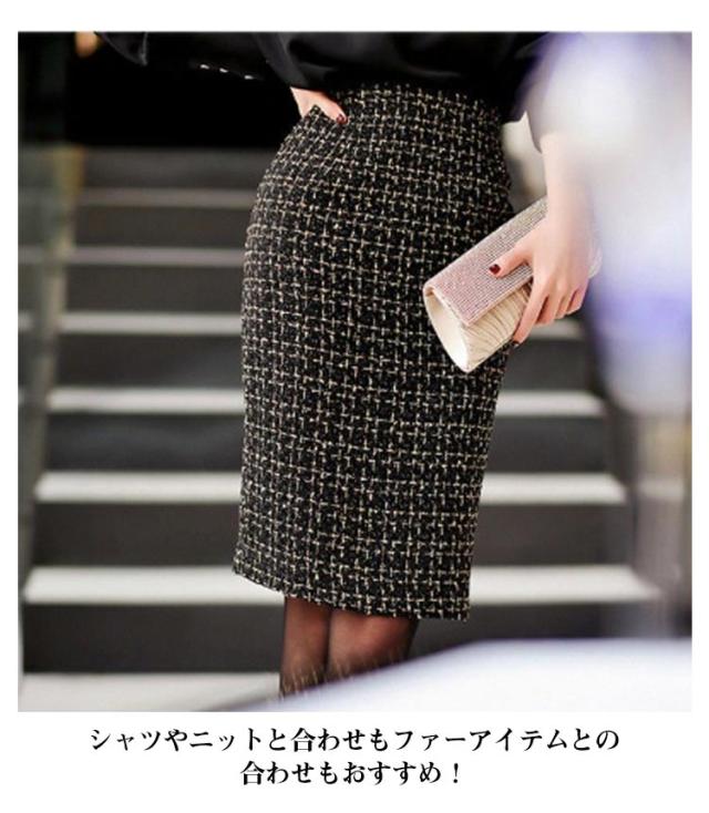 通勤 ツイードスカート 春秋 ミディアム丈 スカート ペンシルスカート タイトスカート ツイードスカート 秋冬 ハイウエスト バックスリット ひざ丈 オフィス フォーマル 上品