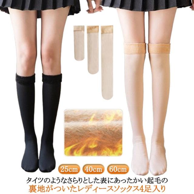 女性用 締め付けない あったかい ソックス 裏起毛 ストッキング ロング 通勤 ニーハイソックス 暖かい くつ下 4足セット 暖かい レディース タイツ 婦人用 快適 オーバーニー 防寒 通学 部屋用 靴下