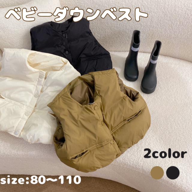 ベビー ダウンベスト ベビー服 中綿 ダウン ベスト チョッキ コート キッズ 子供服 子供 男の子 女の子 防風 防寒 保温 軽量 上着 冬 春 秋 羽織 おしゃれ 通園 お出かけ 韓国風 80 90 100 110 ブラック