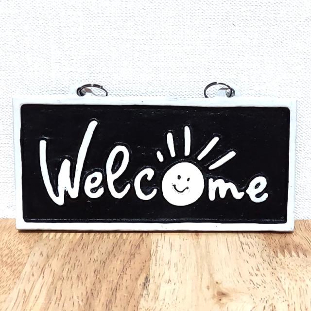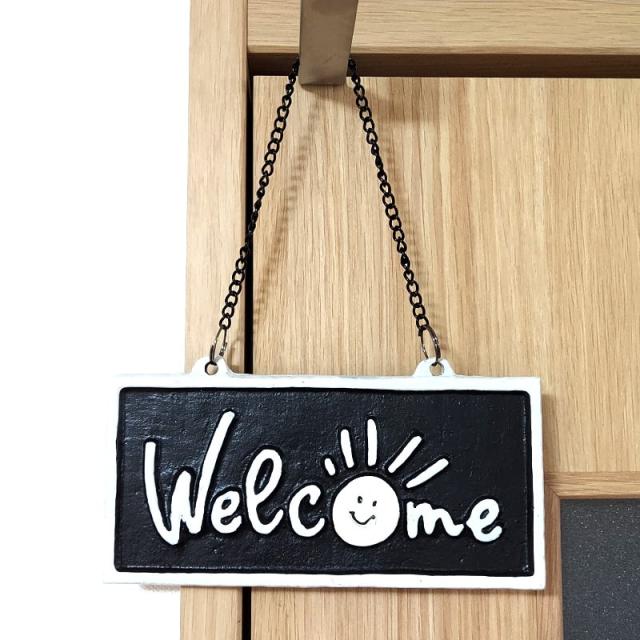 看板 アイアン WELCOME プレート スマイル 両面 吊り下げ 可愛い SMILE ブラック ウェルカム アンティーク おしゃれ 鉄製 アメリカン