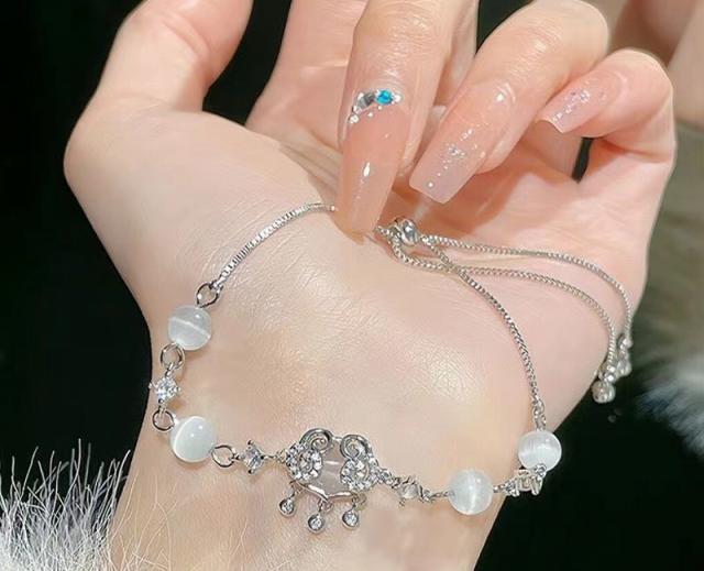 【高見えアクセ☆レディース 繊細 ブレスレッド】 ブレスレッド レディース 高見え ホワイト ストーン クリスタル ハート エレガント 大人 シルバー きれいめ 発表会 結婚式 普段着 入園入学 卒園卒業 送料無料