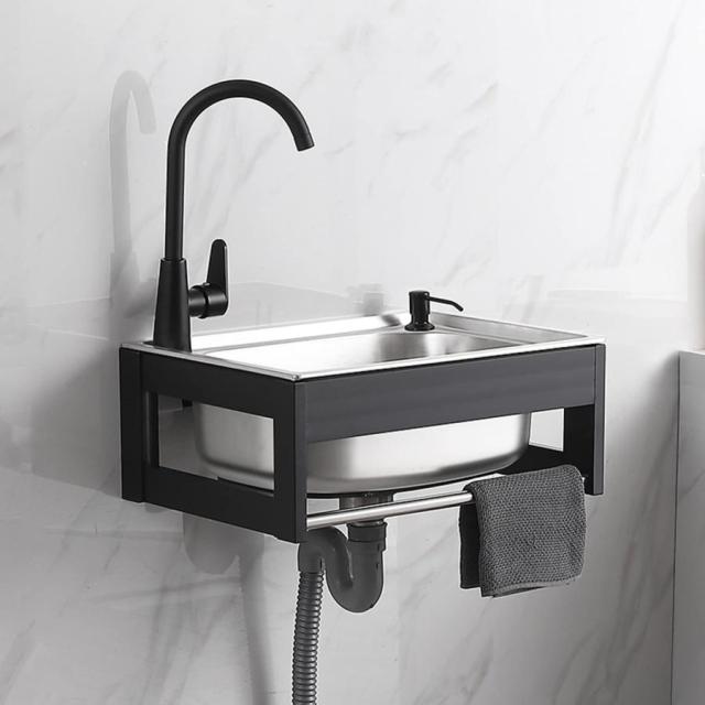 壁掛け式キッチンシンクシンク流し台 ガーデン304ステンレス製1槽洗面台 シングルボウルシンク 簡易シンク 家庭用大容量自立型野菜シンクワークステーションスタ