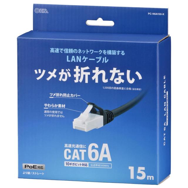 つめが折れないLANケーブル CAT6A 15m [品番]05-1075 PC-N6A150-K [[パソコン・スマホ関連:LANケーブル] オーム電機]