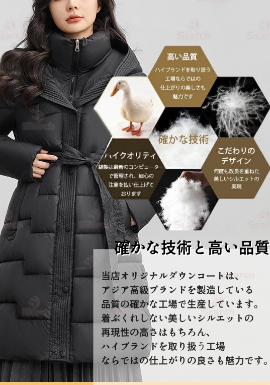 日本人の審美眼に根ざした緻密に作り込まれたものであり、素材にもこだわり、上質な仕上がりを実現しています。Searchより日本の伝統的な美意識とアジアの革新的な防寒技術を融合した、高品質ダウンコートをお届けいたします。