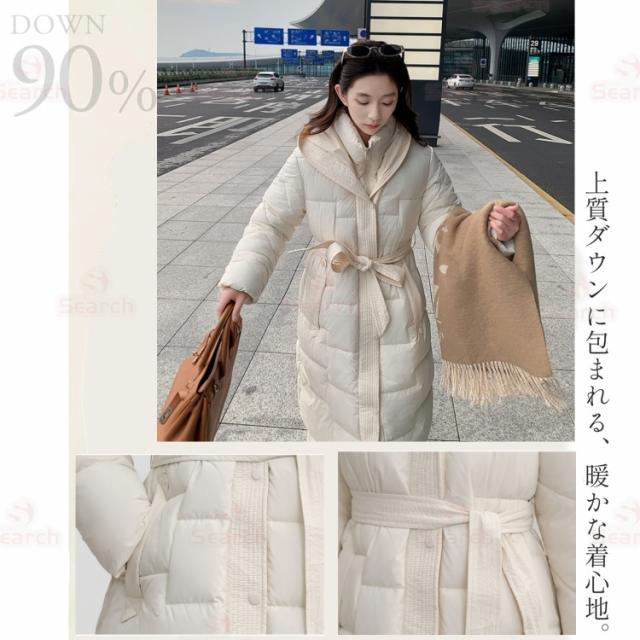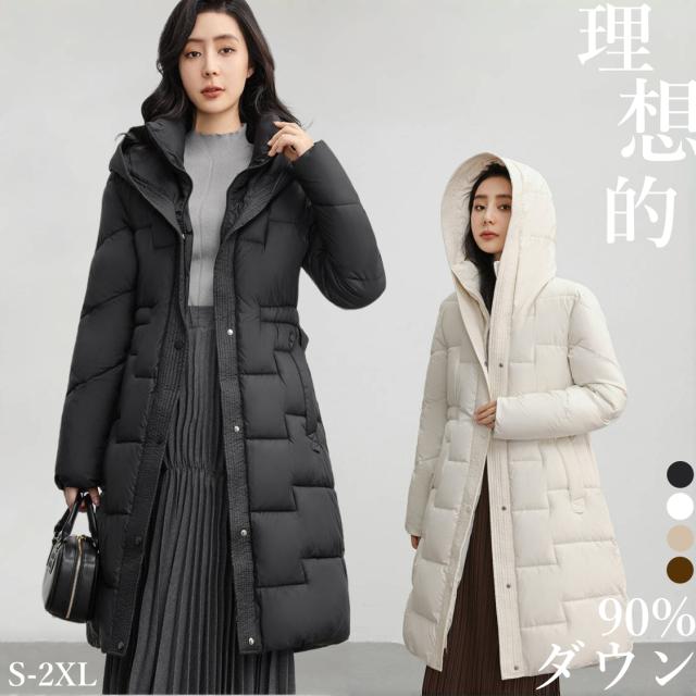 ダウンコート 冬 秋冬 レディース 防寒 ロング コート 軽量 フード付き レディース ダウンコート 暖かい きれいめ ベンチコート 大きいサイズ ダウン90% 30代 40代 50代 厚手 冬用 Aライン 防風 防寒性抜群 体型カバー 大人 シンプル