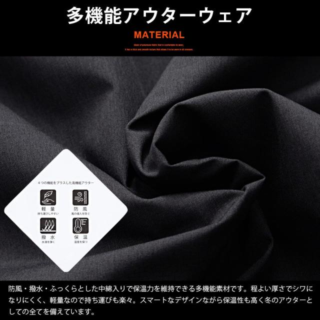 防風・撥水・ふっくらとした中綿入りで保温力を維持できる多機能素材です。