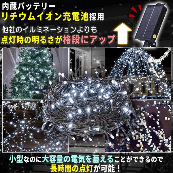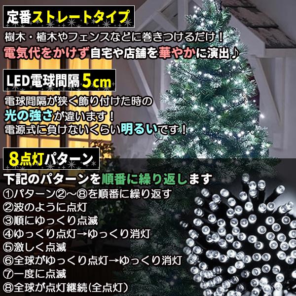 ソーラー イルミネーション 屋外 クリスマス ストレート 屋外用 イルミネーションライト 200球 ホワイト