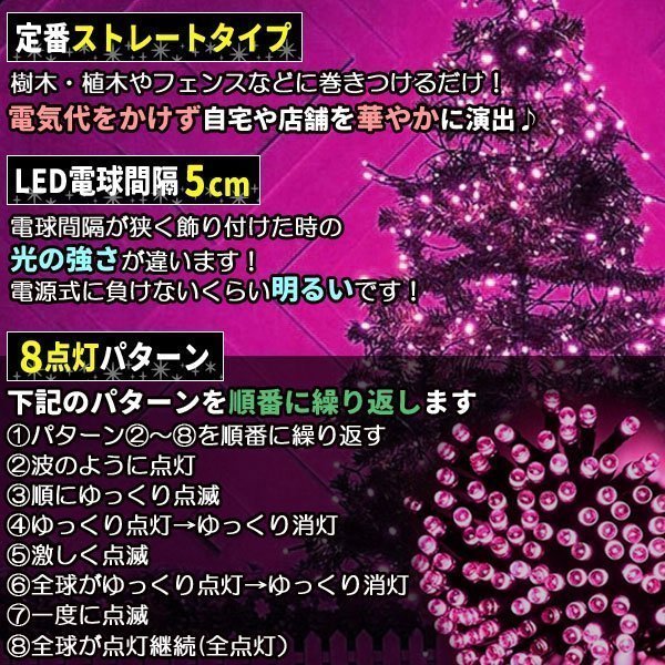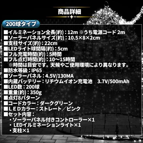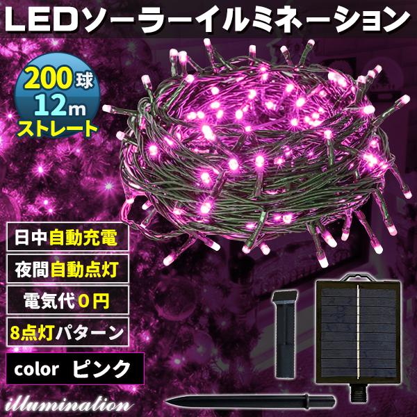 ソーラー イルミネーション 屋外 クリスマス ストレート 屋外用 イルミネーションライト 200球 ピンク