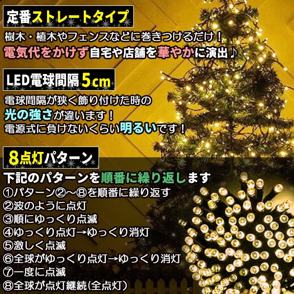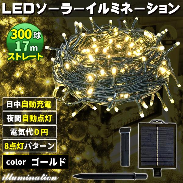 ソーラー イルミネーション 屋外 クリスマス ストレート 屋外用 イルミネーションライト 300球 ゴールド