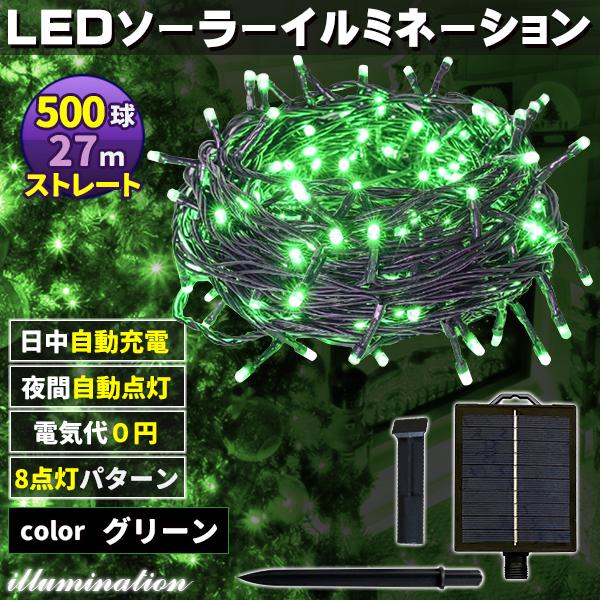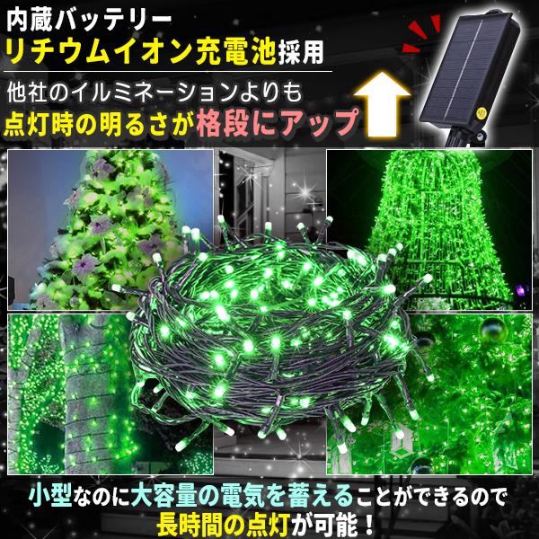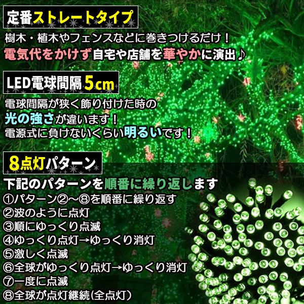 ソーラー イルミネーション 屋外 クリスマス ストレート 屋外用 イルミネーションライト 500球 グリーン