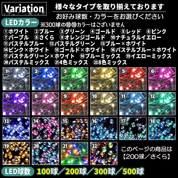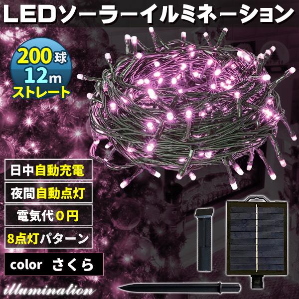 ソーラー イルミネーション 屋外 クリスマス ストレート 屋外用 イルミネーションライト 200球 さくら