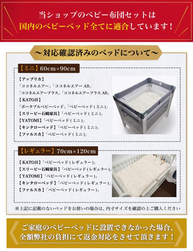 【ミニサイズ】_[60cm×90cm] 【アップリカ】 「ココネルエアー」「ココネルエアーAB」 「ココネルエアープラス」「ココネルエアープラスAB」 【KATOJI】「ポータブルベビーベッド」「ベビーベッド(ミニ)」 【スリーピー石崎家具】「ベビーベッド(ミニ)」 【YATOMI】「ベビーベッド(ミニ)」 【キンタローベッド】「ベビーベッド(ミニ)」 【ファルスカ】「ベビーベッド(ミニ)」 |