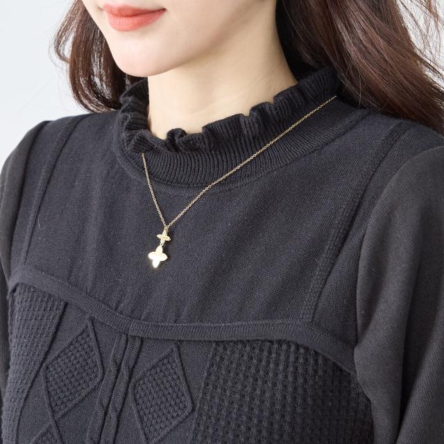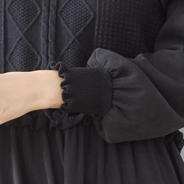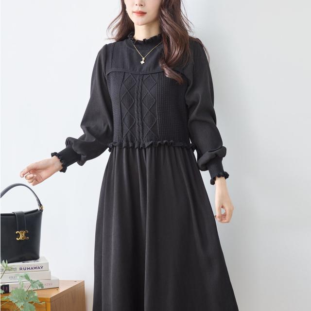 秋冬主役のニットワンピース。きれいなフレアラインは体型カバーも。コンビネーションデザインはレトロなテイストで可愛さが引き立ちます。