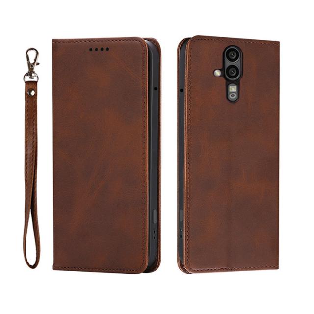 FCNT らくらくスマートフォン F-53E ストラップ付き 手帳型PUレザーケース