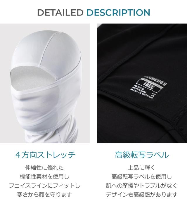 ARMEDESのバラクラバネックウォーマーは、防寒・防風に優れたフェイスマスクです。メンズ・レディース問わず使用できる男女兼用デザインで、3色のカラーバリエーションが魅力。フリーサイズで、バイクや自転車、登山、スキー、スノーボードなどの冬のアクティビティに最適です。また、花粉症対策としても活躍します。サバゲーやスポーツ、ゴルフ、野球、ランニングなど、さまざまなシーンで快適に使用できる万能アイテムです。