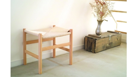 一切の無駄を排したフォルムに、ペーパーコードを座面に施したスツール。