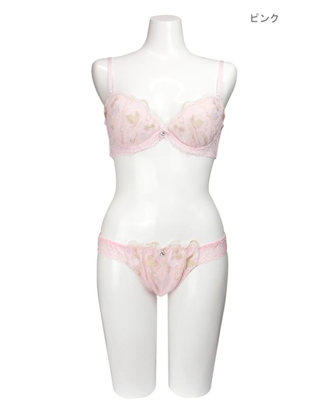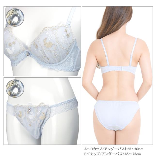 【大きいサイズあり】ロマンティックバニー ブラジャー ショーツ セット 下着(J8003) サックス ピンク C D 65 70 75 80 85 90 95 100 No.bs2401