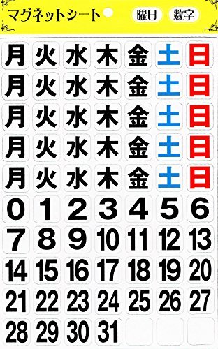 マグネットシート カレンダー 予定表 曜日 数字 フリーシート3つ付き マグネットの付くボードに貼り付けよう! (1セット)