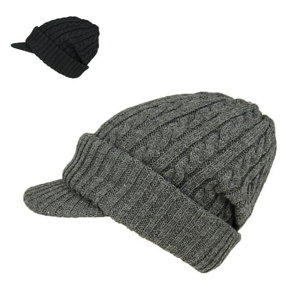 ケーブルニット オスロキャップ 耳が隠れるつば付きニット帽 ニットキャスケット