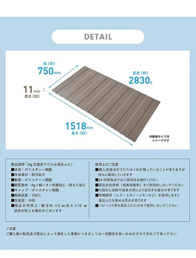 風呂ふた 幅75×長さ151.8cm 折りたたみ式 抗菌 防カビ 日本製 Ag抗菌 AG 銀イオン 風呂フタ 折り畳み ふろふた 風呂蓋 折りたたみふた フラット お風呂フタ PL保険付 浴室 省スペース 新生活 一人暮らし