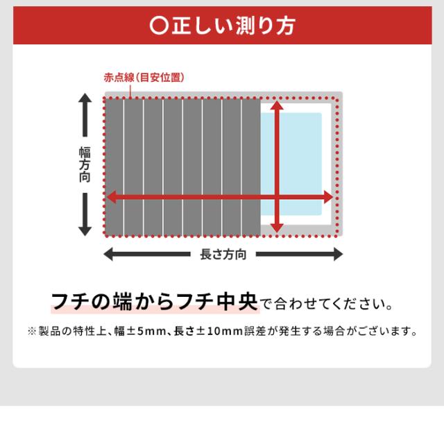 ※製品の特性上、実際の寸法は幅(奥行)・長さ(間口)ともに若干の誤差が生じる場合がございます。〈幅(奥行)±5mm、長さ(間口)±10mm〉