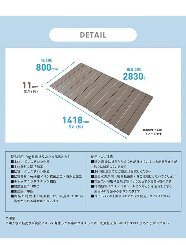 風呂ふた 幅80×長さ141.8cm 折りたたみ式 抗菌 防カビ 日本製 Ag抗菌 AG 銀イオン 風呂フタ 折り畳み ふろふた 風呂蓋 折りたたみふた フラット お風呂フタ PL保険付 浴室 省スペース 新生活 一人暮らし