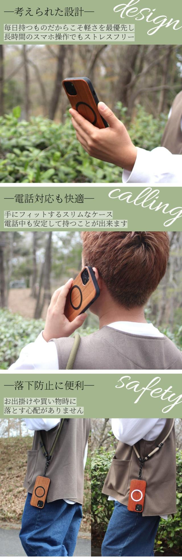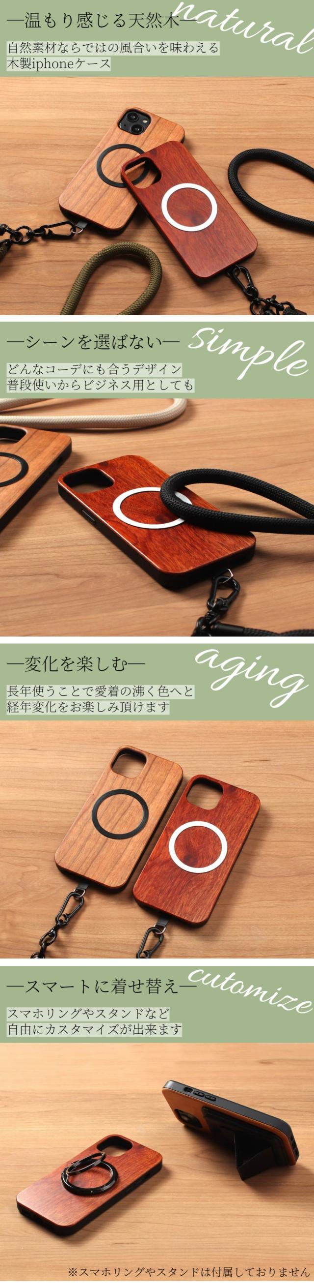 iphone ケース ウッド iphone17 iphone16 iphone15 iphone14 pro max 13 12 マグセーフ対応 magsafe ショルダー ストラップ 調節可能 マグネット アイフォン 17 16 15 14 13 se3 se2 magsafe対応 マグセーフ 天然木 木製 17pro air 16pro 13mini メンズ 落下防止 送料無料