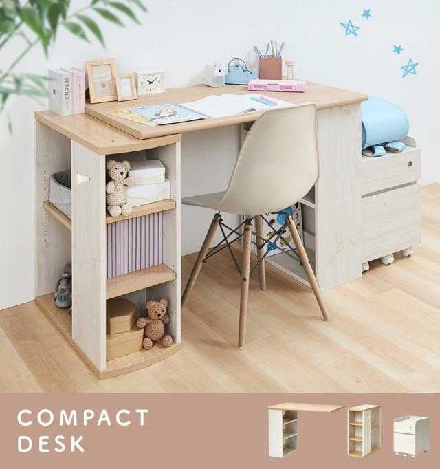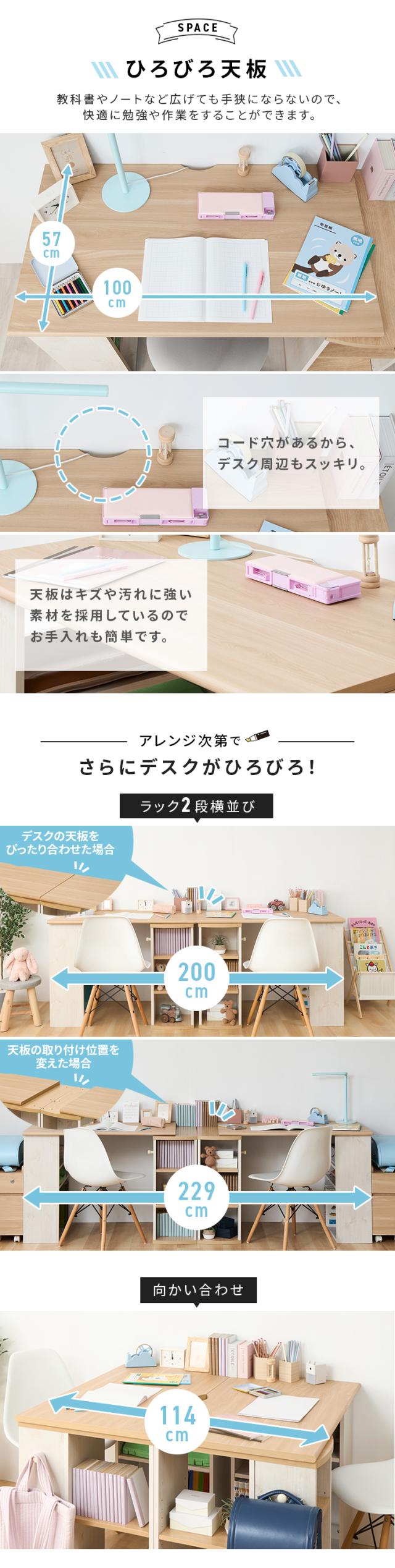 2種類のラックに、教科書や文房具などをお片付けできる収納付きデスクです。