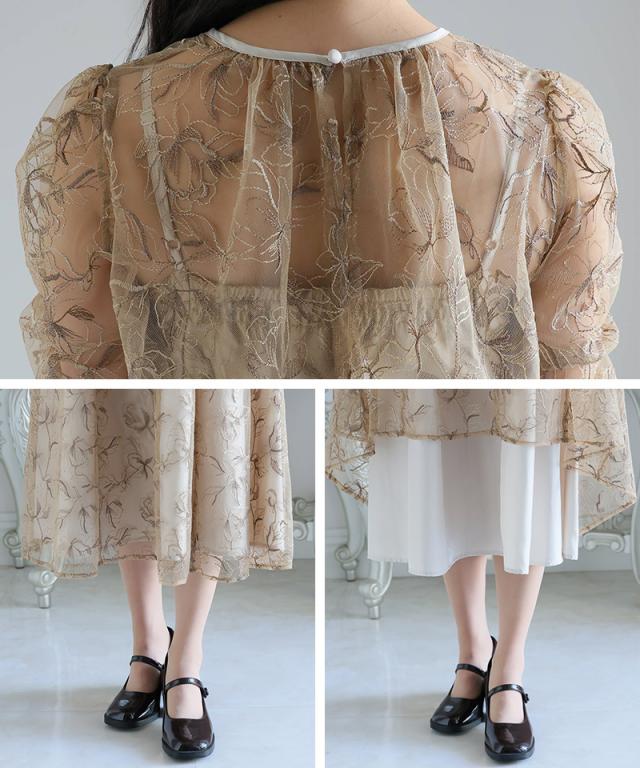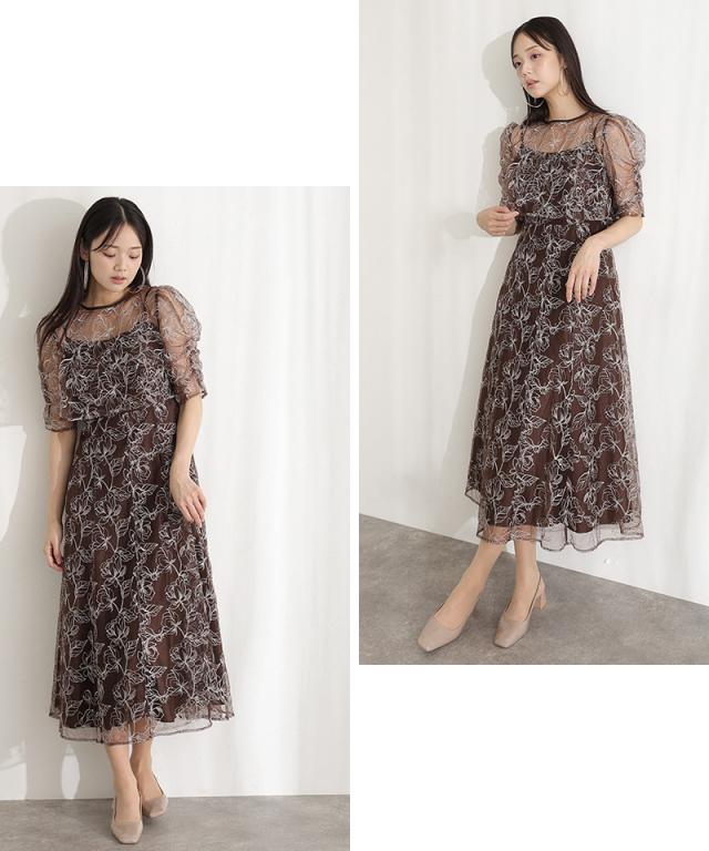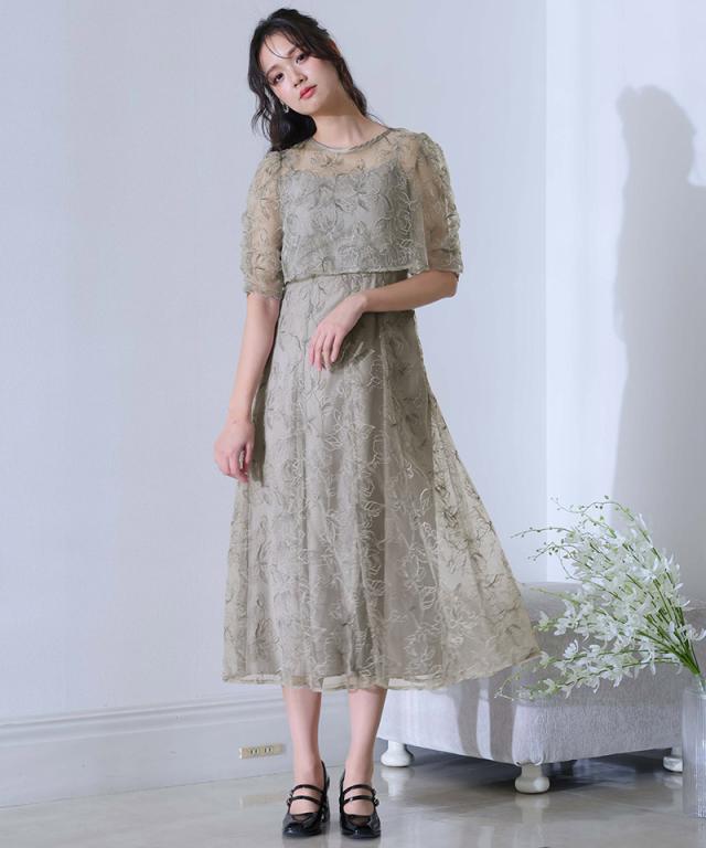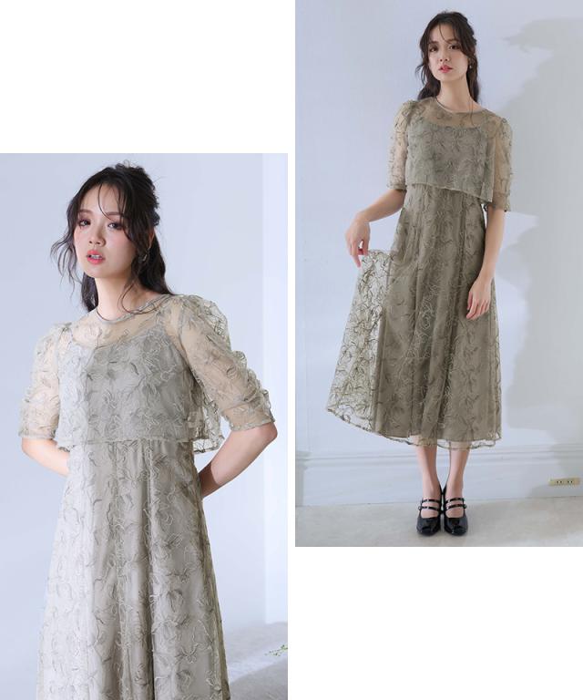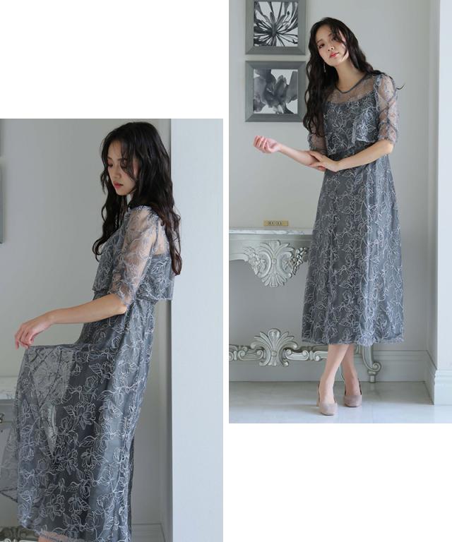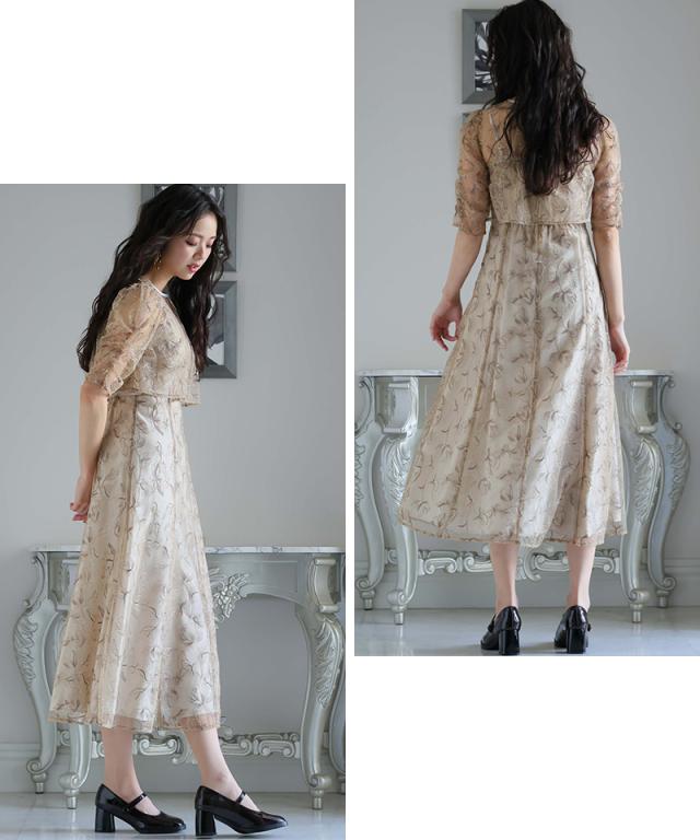 トップス付き花柄刺繍ドレス【196241920】10代・20代・30代・40代・50代・ドレスワンピ・フォーマルワンピ・パンツドレス・服装・ワンピース・ドレスカジュアル・ブランド・七分袖・長袖・ロング・膝丈・薄手・厚手・無地・刺繍・脚長効果・伸縮性・キレイめ・着やせ・体型カバー・スタイルアップ・レース・リボン・ドレープ・小さいサイズ・3Lや4L・かっこいい・かわいい・即日発送・送料無料・結婚式・婚活・披露宴・顔合わせ・発表会・演奏会・二次会・同窓会・お呼ばれ・食事会・謝恩会・親族・七五三・お宮参り・冠婚葬祭・弔事・女子会・韓国・デート・入学式・卒業式・入園式・卒園式・ママ・ピアノ・マタニティー・セレモニー・セレブ・パーティー