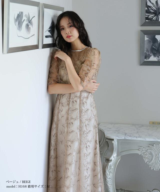196241920 トップス 花柄刺繍 ワンピース パーティードレス 体型カバー 大きいサイズ 結婚式 小柄 オケージョン ドレス フォーマル フォーマルドレス 20代 30代 40代 50代 お呼ばれ 上品