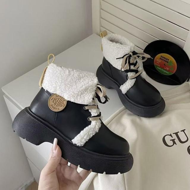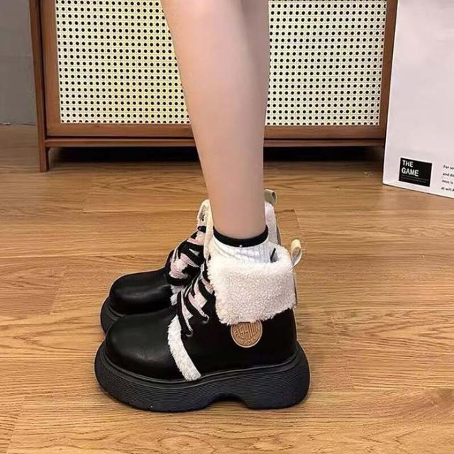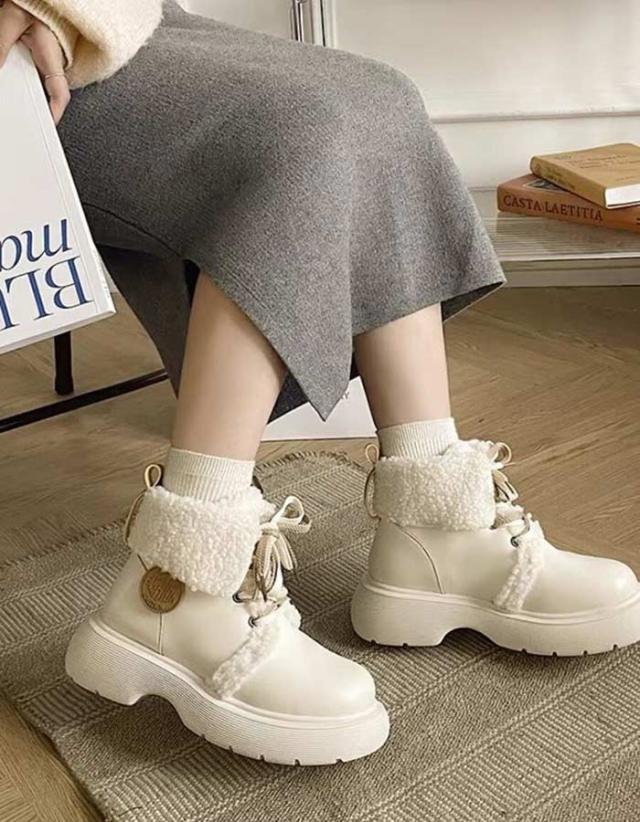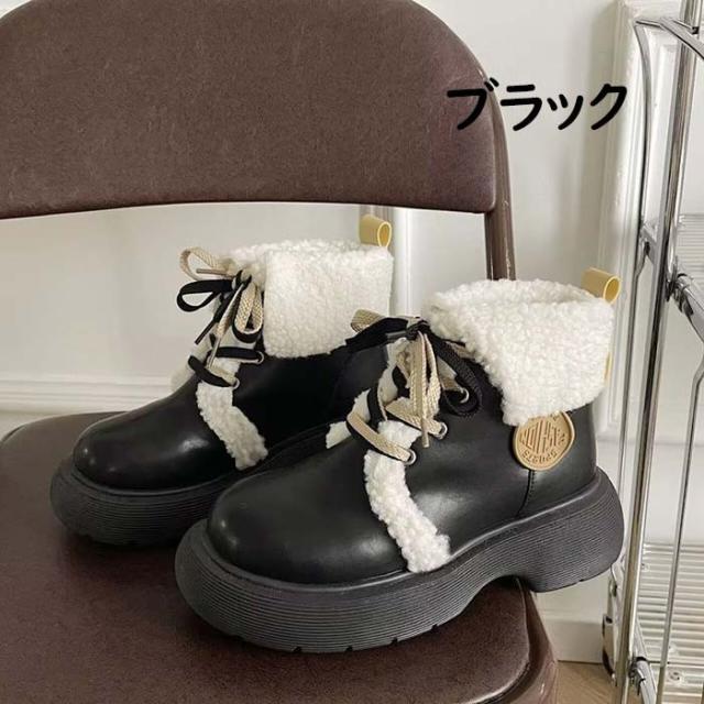ショートブーツ レディース シューズ 靴 美脚 裏起毛 ボア付き 秋冬 大きいサイズ 歩きやすい シンプル おしゃれ 防寒 ブラック オフホワイトdi005m6m6m5