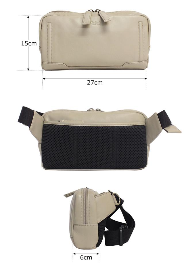 背中で斜め掛けにして持てる、ほど良いサイズのボディバッグです。