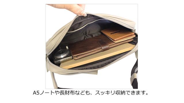 長財布がしっかり入る大きさで、収納ポケットもしっかりあり、すっきりとスマートに持つことができます。