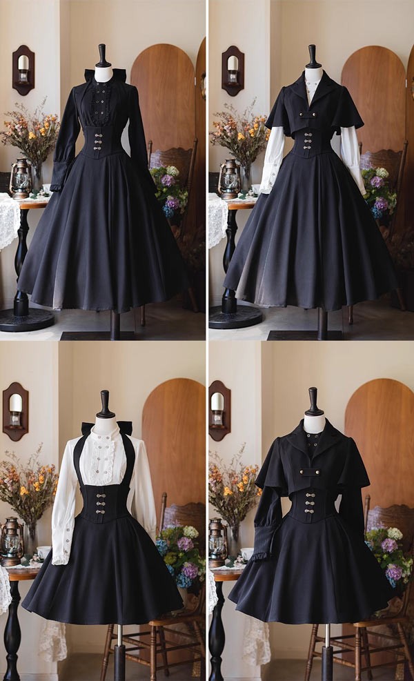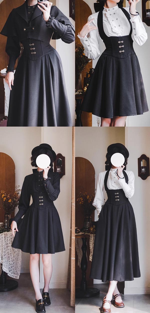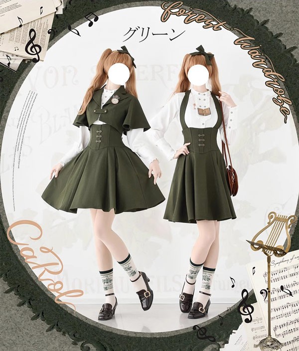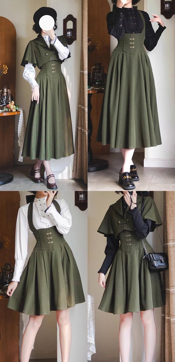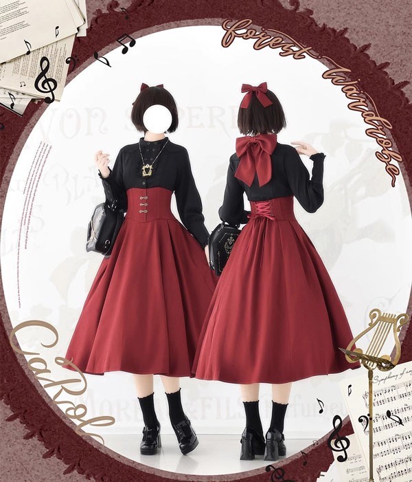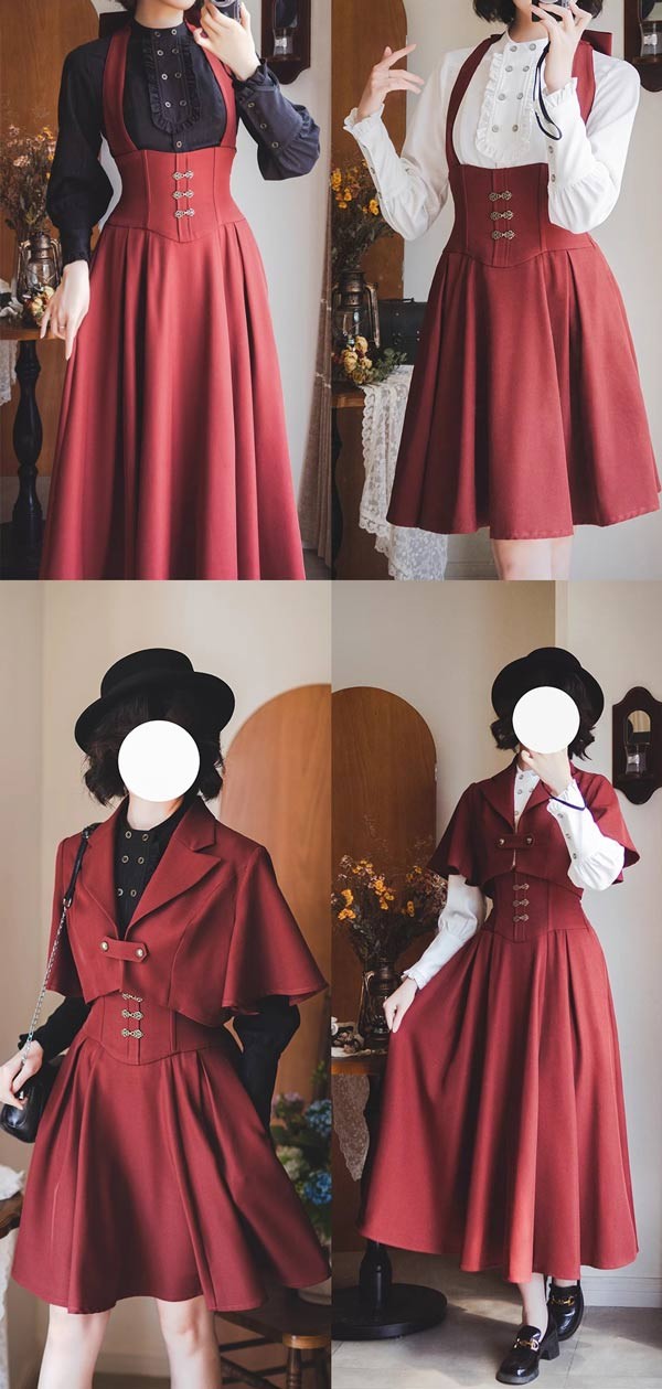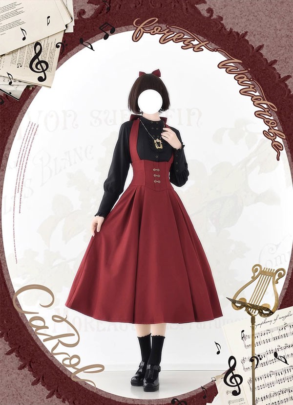 ロリータスカート ホルターネック ジャンパースカート シャツ追加可 トップス ロング ジャンスカ レディース フレアスカート イギリス風 リボン ノースリーブ コスチューム コスプレ衣装 大人 仮装 パーティ 文化祭 学園祭 ブラウス レッド グリーン ブラック