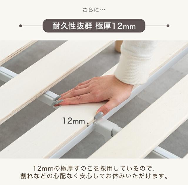 ※すのこに青っぽい染みのようなものがある場合がございますが、松系統に良く見られるものであり、カビではございません。人体・強度に影響はございませんので、予めご了承ください。※天然木特有の臭いがある場合がございます。臭いが気になる場合は、開封時・組立時に換気を行なってください。