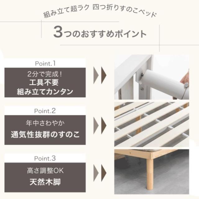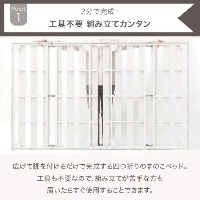 [即納] 組み立て“超ラク” 折りたたみ すのこベッド シングル 天然木 パイン ベッドフレーム フレームのみ 四つ折り 組立簡単 フレーム すのこ ベッド シングルベッド 折り畳み