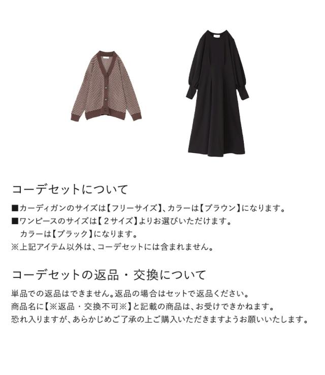 『ヘリンボーンニットカーディガン×ウエスト絞りワンピースコーデ2点SET』【メール便不可】【50】[2点コーデセット 2024 レディース ニット カーディガン ワンピース ロングワンピース マキシワンピース]
