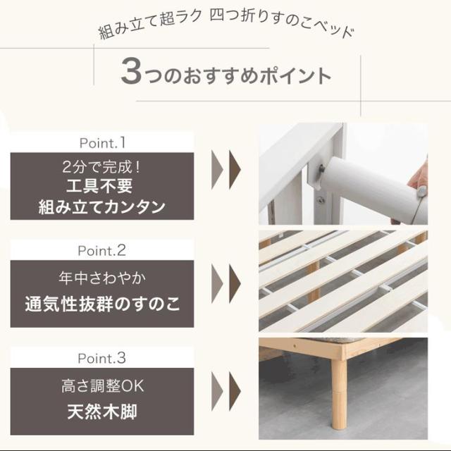 組み立て“超ラク” 折りたたみ すのこベッド ダブル 天然木 パイン ベッドフレーム フレームのみ 四つ折り 組立簡単 フレーム すのこ ベッド ダブルベッド 折り畳み
