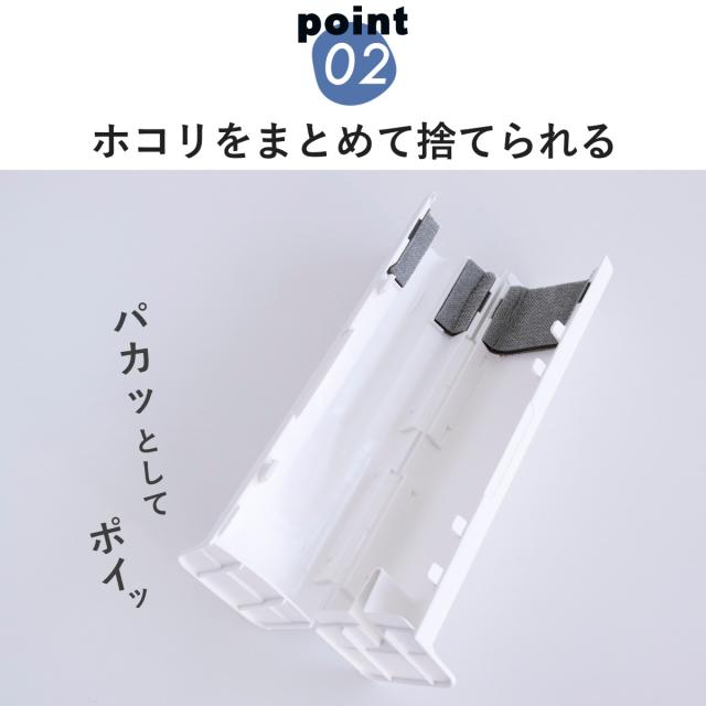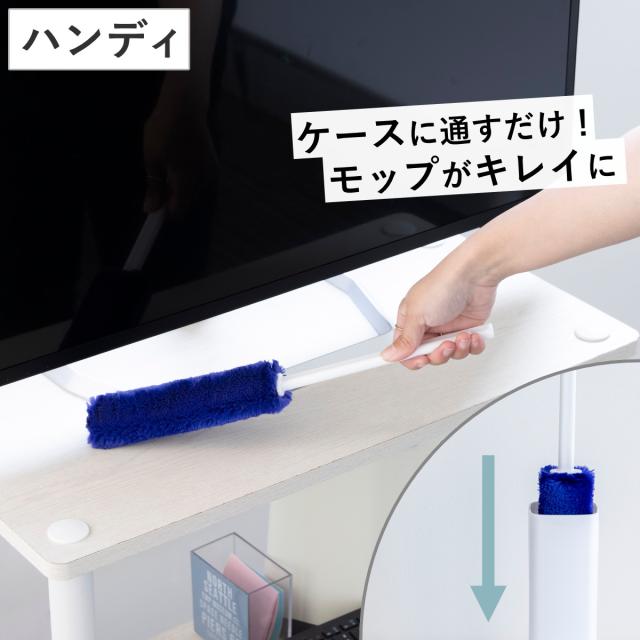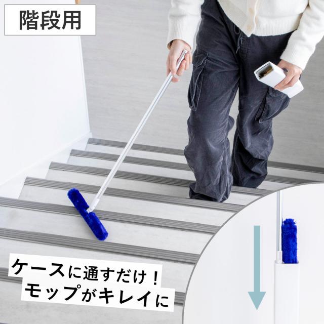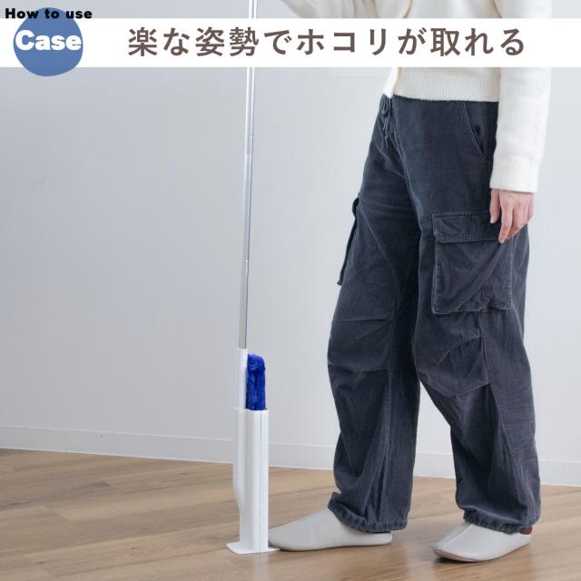 ケースに差し込むだけで、モップについたホコリが簡単に落ちます。掃除後のお手入れが手軽にできるので、いつでも気持ちよく繰り返し使えます。