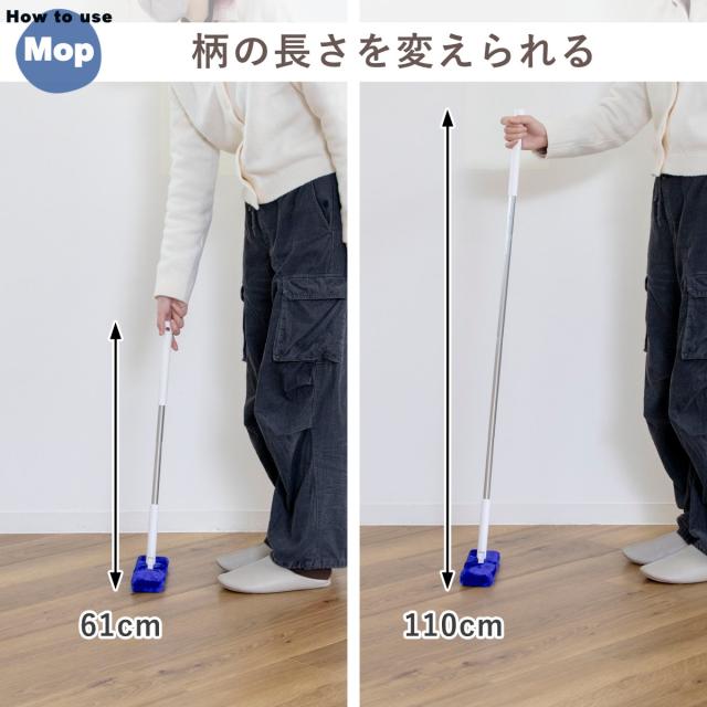 ケース根元を足でおさえてモップを抜き差しできるので、かがむ必要もなくラクラクです。