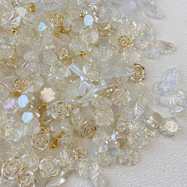 樹脂デコレーション ビーズ アクセサリーパーツ デコパーツ DIY 携帯電話ケースのデコレーション ネイルデコレーションなどに適しています ホワ